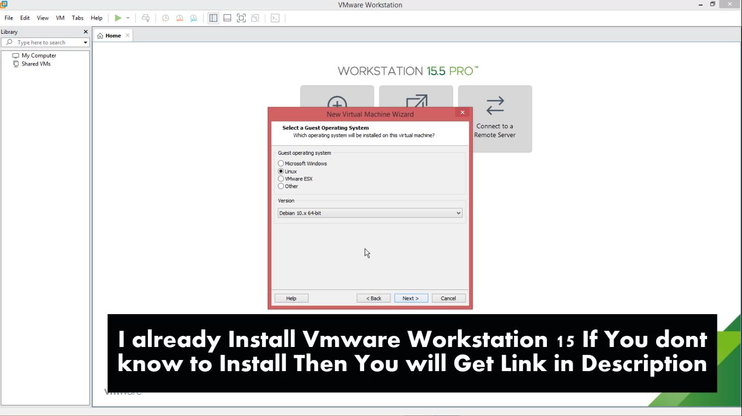 Step #4. Select Linux and Debian 10 X64bit Then Next.