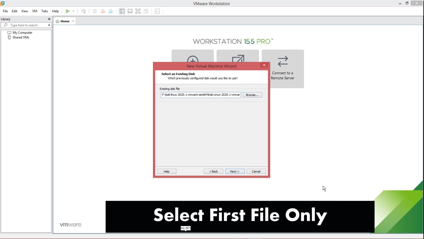 Step #12. Browse and Select Kali Linux Vmware ISO Image Files.