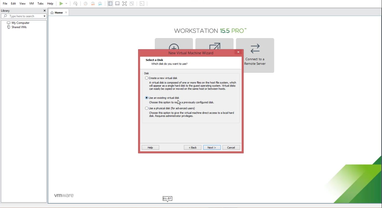 Step #11. in This Step, Select 2nd Option Use an Existing Virtual Disk.