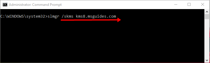 Step 3. Now Enter the Command “Slmgr /Skms Kms8.msguides.com” to Connect to My Kms Server.